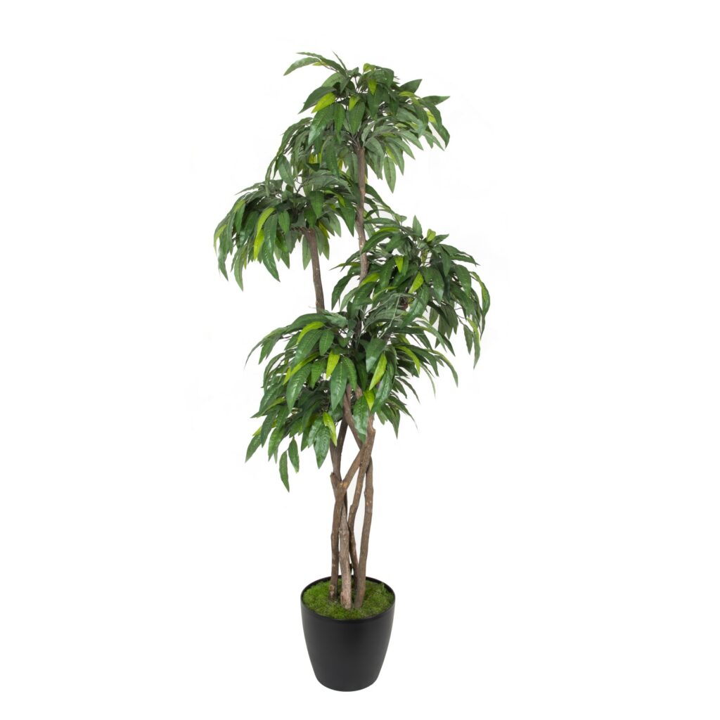 [0] => The Mango Tree Plant, which comes in a round black planter with decorative moss, is an attractive artificial plant for your living room, dining room, or office that brings bright green to your space — all without needing to be watered!