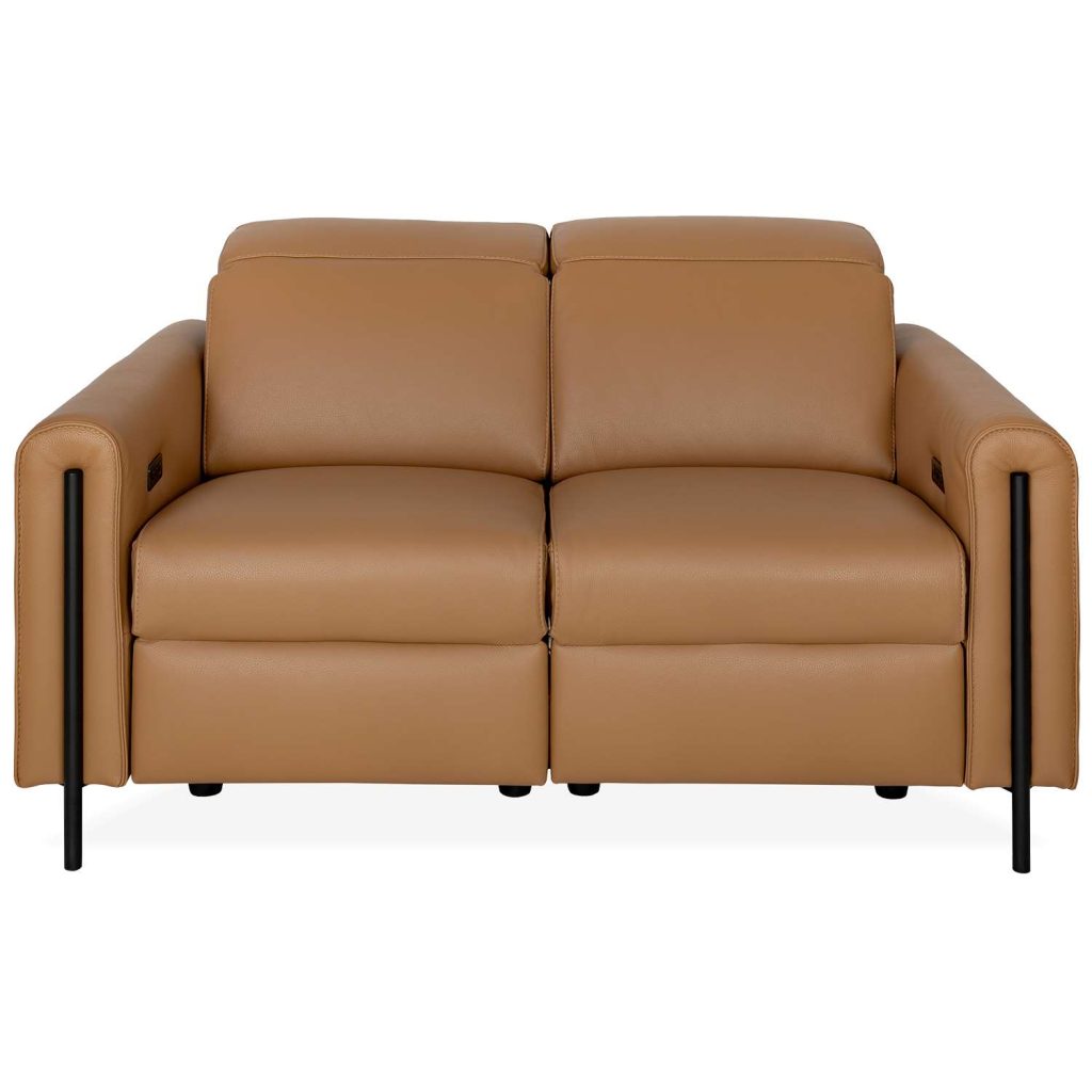 [0] => marcella power motion loveseat - 1069 cognac leather w/black metal trim