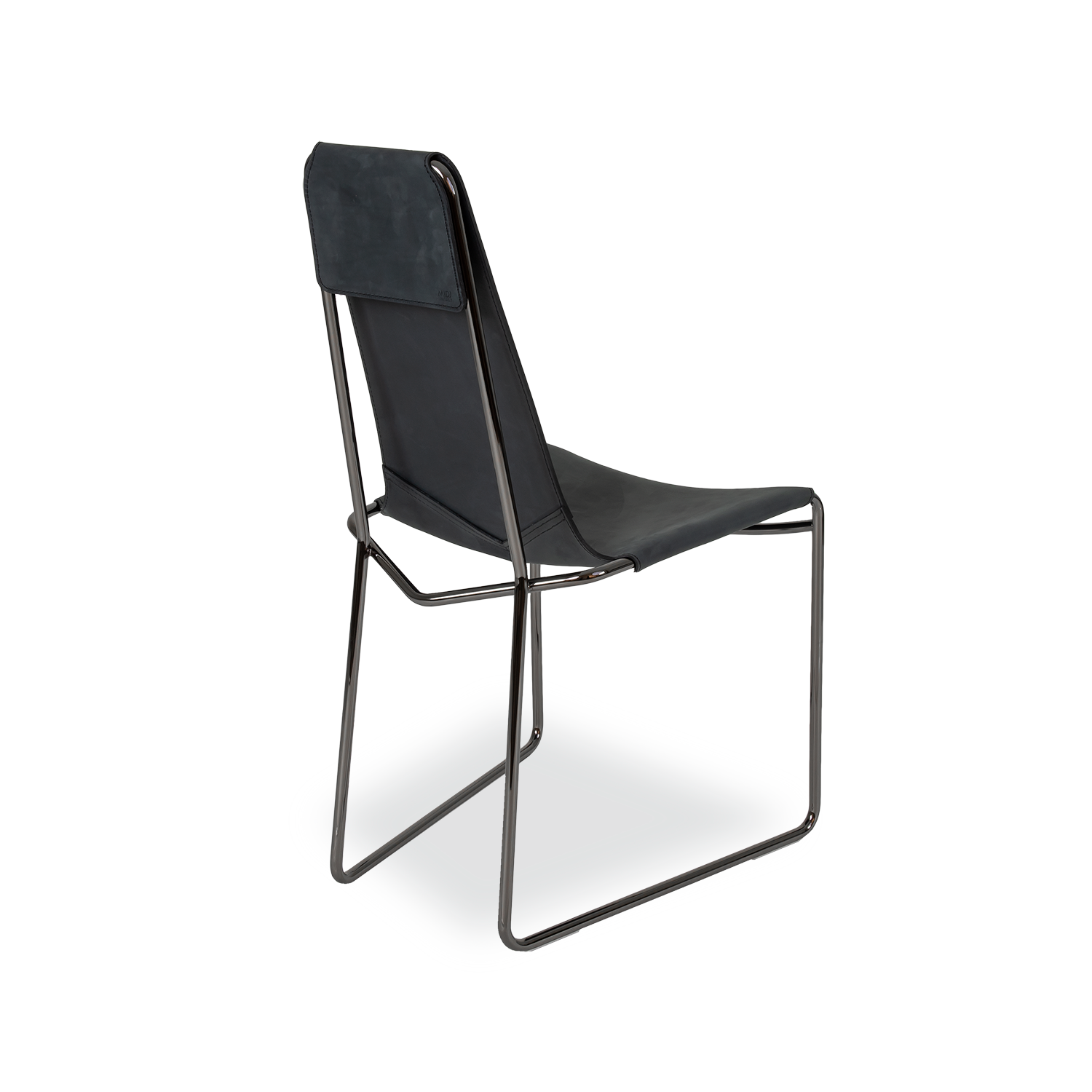 Made in Italy, the Mia Dining Chair is an intriguing sculptural feat, with a light, organic structure and chic modern design. The black nickel frame has an eye-catching gloss finish and curves to a rounded "v" in the back, matching the stitching along the backrest and creating a tailored touch. The seat is upholstered in soft black Tuscan hide.