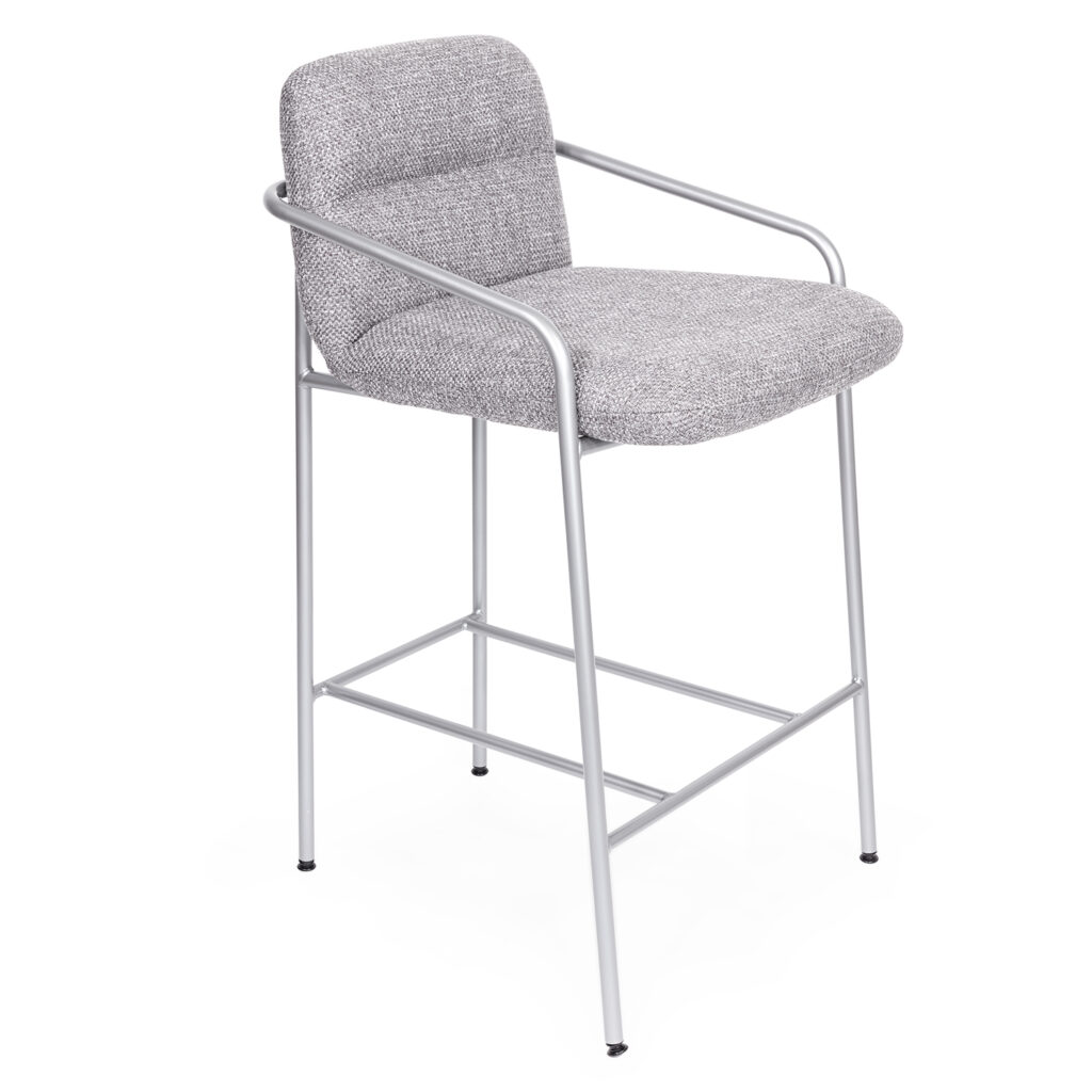 [0] => The Milanos Counter Stool is sophisticated and contemporary, with clean lines and a rounded seat and back. A smooth magnetite frame supports the seat and backrest, which are padded with a thick layer of foam and upholstered in durable tuxedo fabric with a chunky weave and variegated tones of black, grey, and white. Slim armrests and a horizontal crossbar footrest add extra comfort, and the straight stitching on the seat mimics the fluid lines of the frame. Milanos' minimalist design, neutral fabric, and stylish lines make it the ideal versatile piece for any kitchen or dining space.