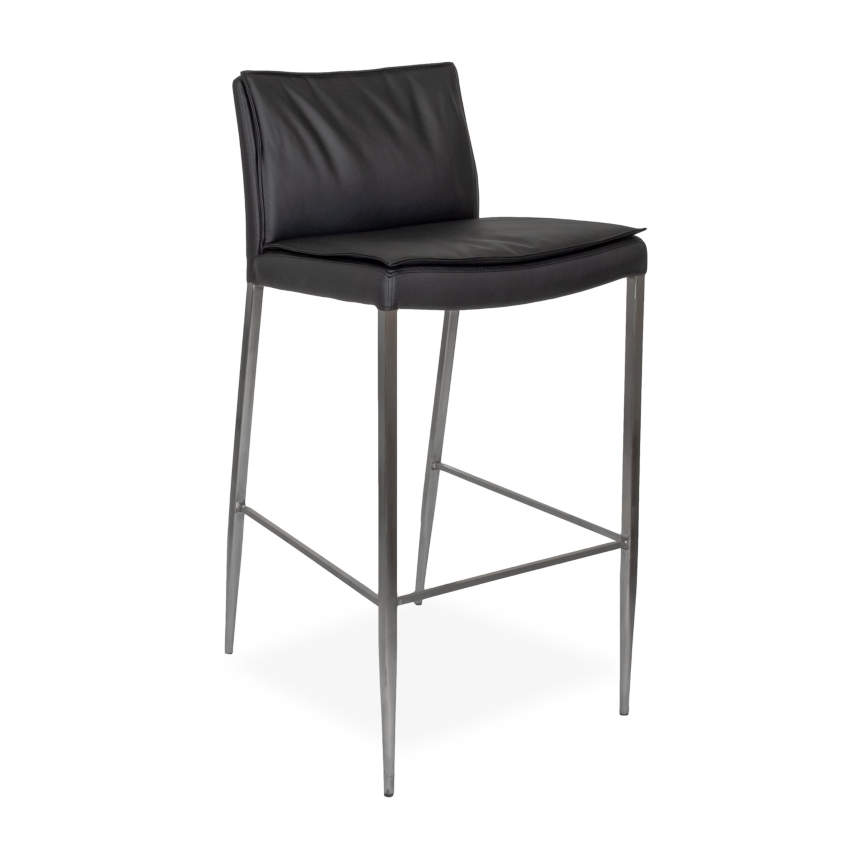 [0] => morris soft barstool black pu19 leatherette. matching stitch. brushed stainless steel legs