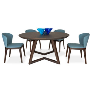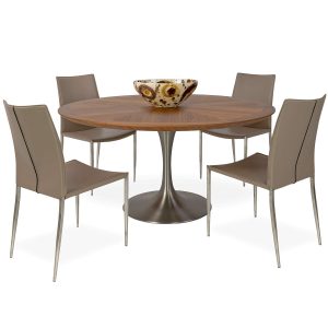 [description] => Oliana Dining Table 59" Round - Walnut W/ Brushed Stainless Steel Base