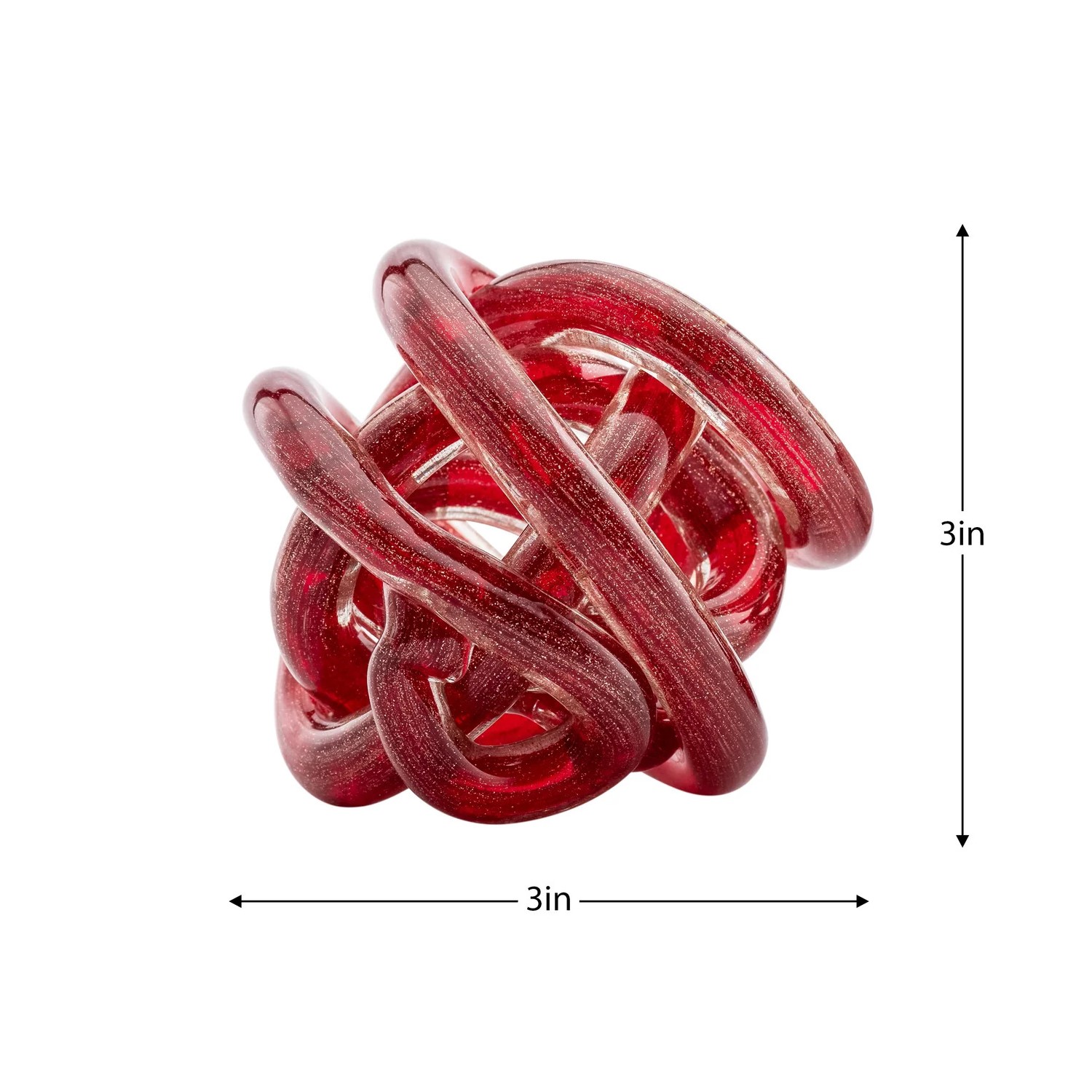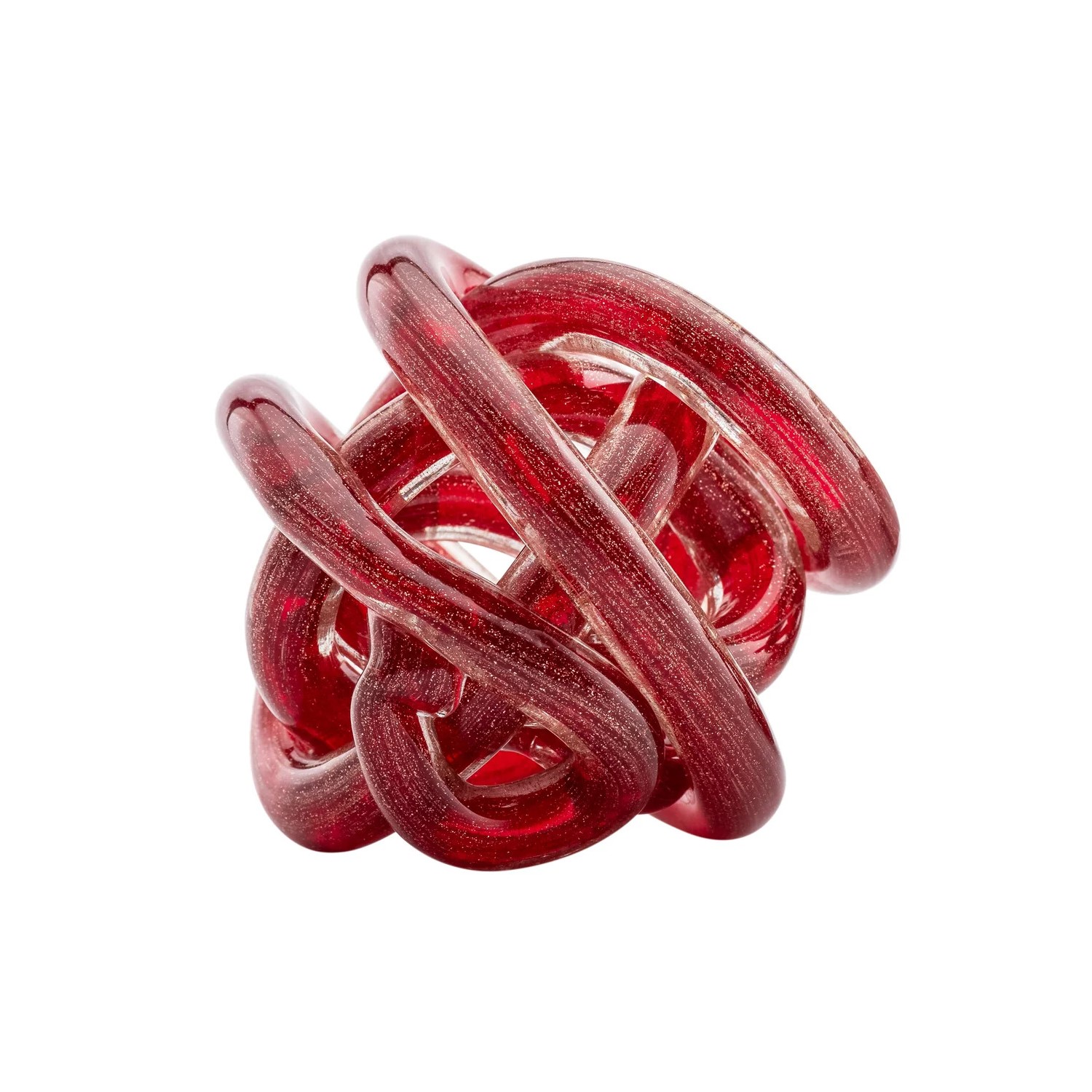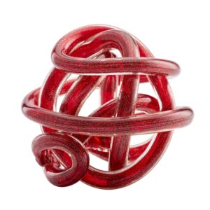 [0] => The Orbit Small Glass Ball, shown in red, consists of a length of glass twisted and knotted into an eye-catching orb shape. Gold glitter accents make this piece perfect decor for the holidays, or place it on your bookshelf, desk, or table for a mini burst of color year-round.
