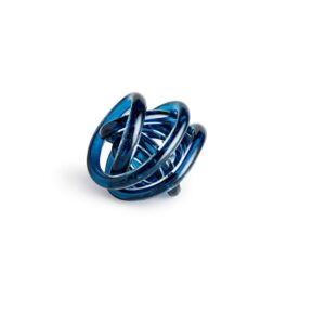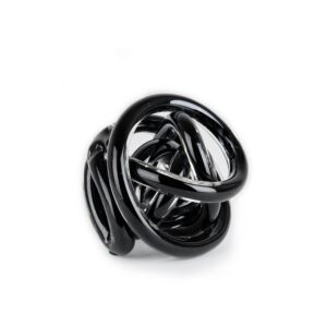 The Orbit Small Glass Ball, shown in red, consists of a length of glass twisted and knotted into an eye-catching orb shape. Gold glitter accents make this piece perfect decor for the holidays, or place it on your bookshelf, desk, or table for a mini burst of color year-round.