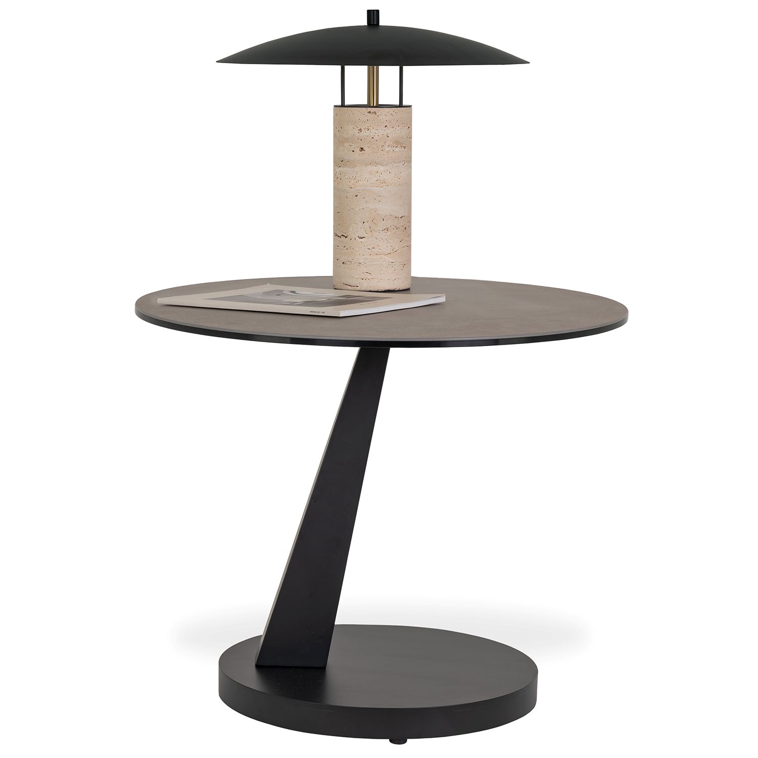 [0] => Bold and modern, the Orio End Table features a circular tabletop in matte grey ceramic, complemented by an angled leg and matching circular base in powder-coated black metal. Orio's simple, subtly architectural form makes it ideal for contemporary, industrial, or minimalist design themes. Pair with the matching Dorio Coffee Table for an extra layer of functionality.