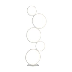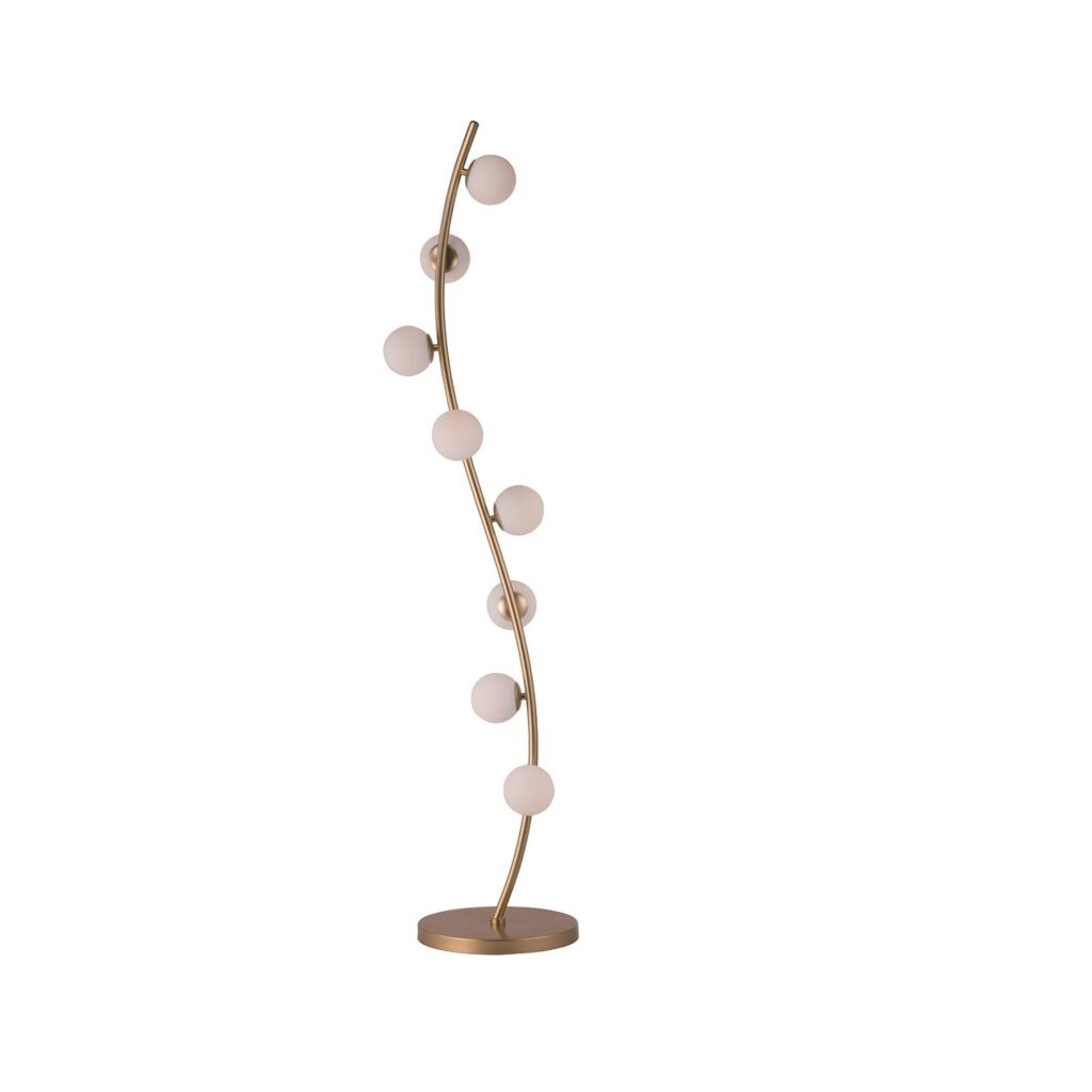 [0] => The Rover Floor Lamp features a gently curved steel and aluminum frame with a metallic gold finish. Eight satin-white glass spheres with integrated LEDs cast light in all directions with a warm color temperature of 3000K. Reminiscent of a flowering branch, the Rover Floor Lamp's organic lines and soft color scheme will add a welcoming mood to any home or office.