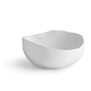 [0] => Made of ceramic with a matte white glaze, the Ruffled Feather Bowl has graceful, curling edges that evoke a feather or fallen leaf. Versatile and beautiful, this bowl can display seasonal fruits or be mounted on your wall as a hanging sculpture.