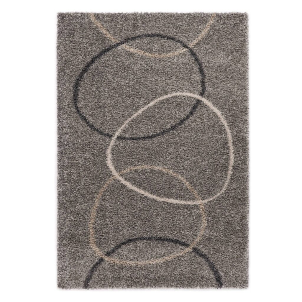 [0] => The Shoreline Reef Rug features a playful pattern of overlapping circles in contrasting shades of grey and beige, with a low, shaggy pile that is soft to the touch. Woven in Belgium from 50% heat-set polypropylene and 50% polyester, the Shoreline Reef Rug is durable enough for any area of the home. Place it in your living room, entryway, or bedroom to instantly add personality, coziness, and a touch of fun.