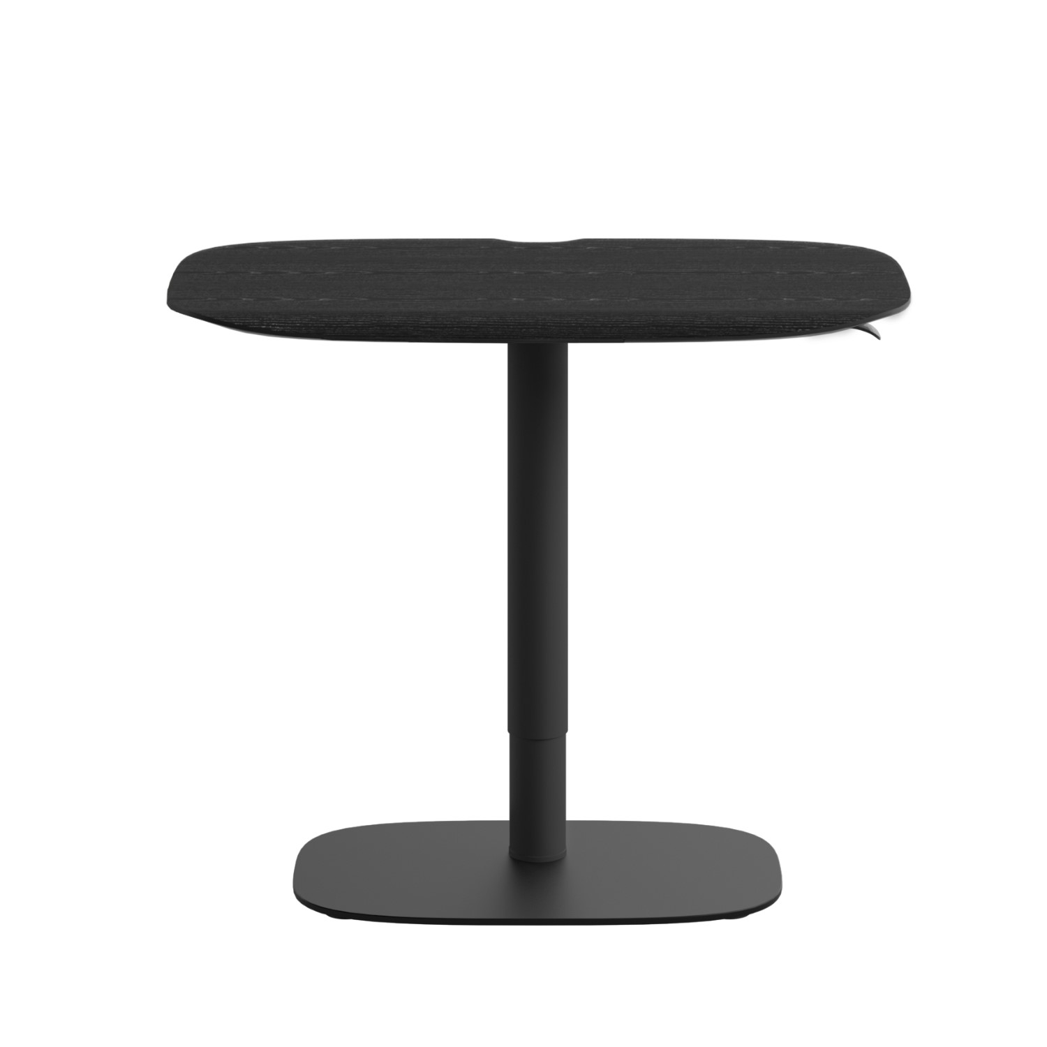 Work from anywhere with the Soma Compact Lift Desk by BDI. Available with an ebonized ash veneer desktop and powder-coated aluminum base, this power-free desk moves on its pneumatic column with the touch of a lever to seamlessly switch between seated and standing use. A contoured front edge provides ergonomic wrist support, while finger grooves beneath the desktop offer tactile grip when adjusting the height. Soma also features a cable routing channel and wire management wrap to help you stay organized, plus a sturdy weighted foundation with integrated glides that allow the desk to be moved easily. It's the newest compact mobile solution for a productive and healthy workday.