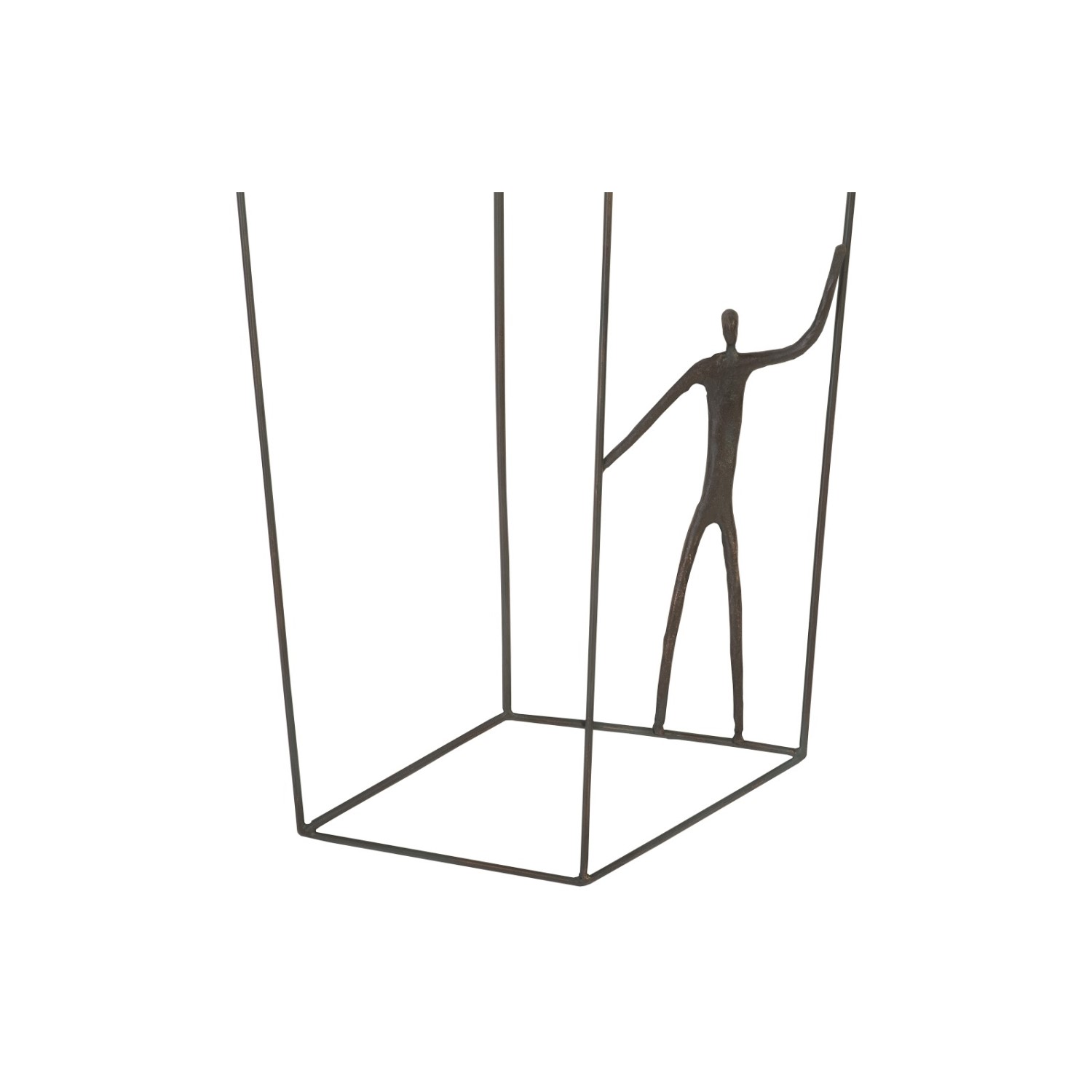 [0] => The Standing Perspective Wall Art features a figure of a person balancing in an asymmetrical rectangular wire cage, with morphed angles and a manipulated perspective that plays with the eye. Whether displayed by itself or alongside the other items in the Perspective collection, this decorative wall structure will bring a chic, three-dimensional element to any home.