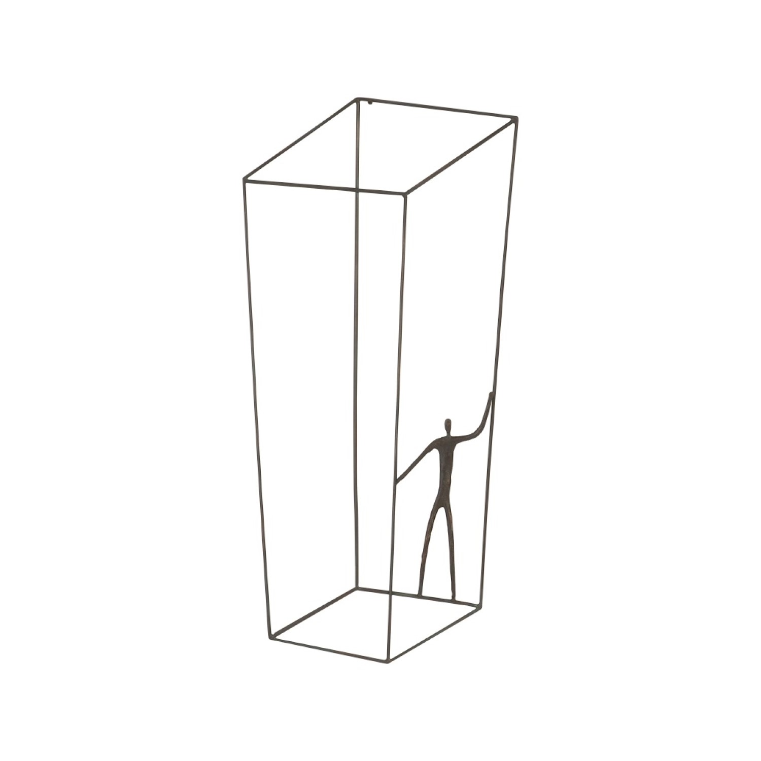 The Standing Perspective Wall Art features a figure of a person balancing in an asymmetrical rectangular wire cage, with morphed angles and a manipulated perspective that plays with the eye. Whether displayed by itself or alongside the other items in the Perspective collection, this decorative wall structure will bring a chic, three-dimensional element to any home.