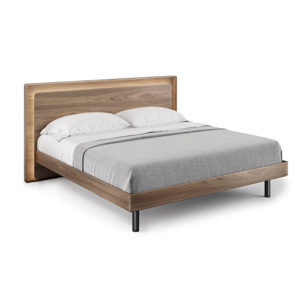 Designed by Matthew Weatherly for BDI, the Up-Linq King Bed combines a classic walnut veneer with cutting-edge features made to fit your modern lifestyle. Up-Linq's headboard has a floating front panel that hides an ultra-convenient power station on both sides of the frame. With three outlets, a USB-A port, and a USB-C port on each side, both you and your partner can charge devices, keep a lamp plugged in, and stay connected from the comfort of your bed.
