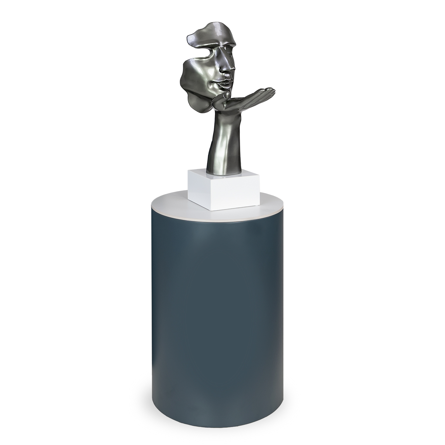 The 31.5" Winter Grey Podium is a sleek, modern display pedestal ideal for showing off a treasured sculpture, vase, bowl, plant pot, or more. This cylindrical podium features a base with a blue-grey finish that contrasts with the off-white marble-like look of the Carrara ceramic top. Pair this podium with its taller 39" companion for an elegantly coordinated display setup.