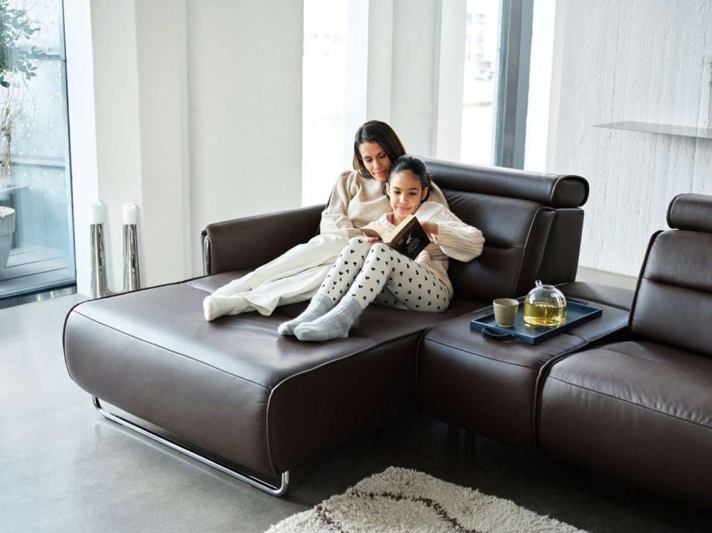 Furniture that supports the body and facilitates relaxation can make it easier to unwind, connect with others, and share quality time. Depending on how much of a change you want to make, you can splurge on a power-motion sectional like the Lianne, or add a recliner like the Stressless® Max, world-renowned for its comfort technology.