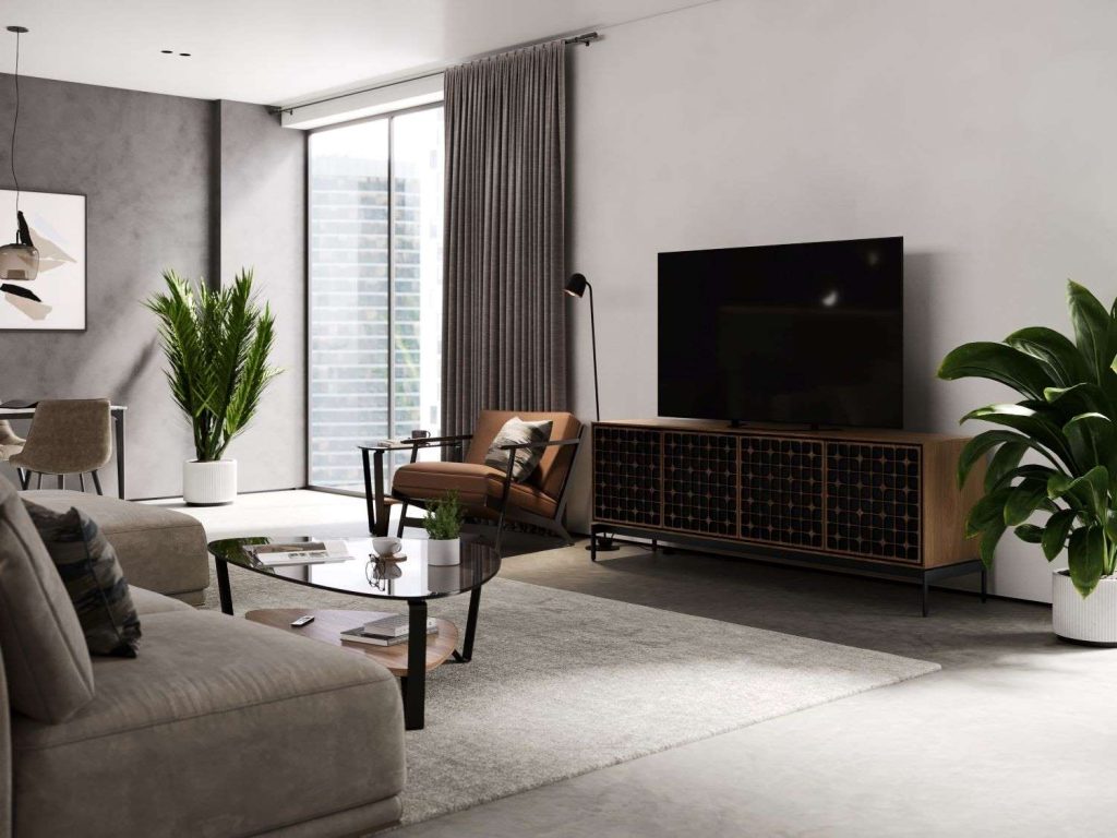 If something feels visually off about your media setup, it could be that your TV unit is not proportional to your TV. Generally, a media base that is at least 6” wider than your TV on either side will prevent the setup from looking top-heavy, as well as provide stability.