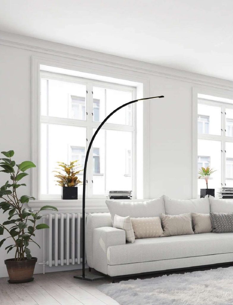 At night, layered lighting is a must. In addition to overhead lights, strategically place some floor and table lamps near areas where people sit or congregate. We recommend lamps with LEDs, dimmer functions, and clean lines – like the Sonic Arc Lamp or Circo Table Lamp – for a blend of adjustability and sustainability.