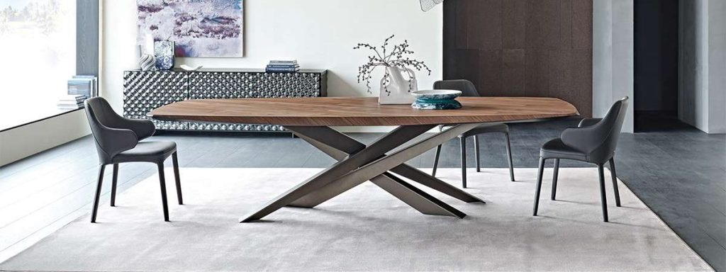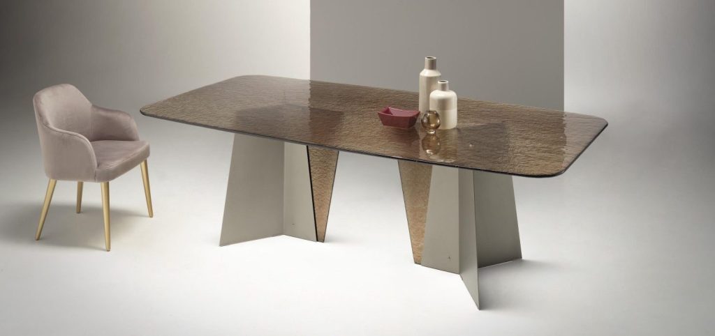 Divanni GP is another Italian manufacturer producing ultra-modern pieces worthy of admiration. Their Grus Dining Table features a geometric base and a melted glass top that resembles rippling water, showing an innovative spirit when it comes to form and finish.
