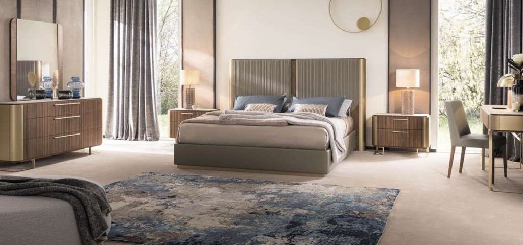 Simply look at the plush armrests of the Hugo Sofa, or the wide seats and wraparound accent cushioning of the Mira Sectional, and you may understand why many are enamored with the maximalist aesthetic. Also of interest is Alf Italia’s Bella Ruggente Dresser – it unites carved wood, gold lacquer, and grey eco-stone for a sumptuous look that will stand out in any bedroom.