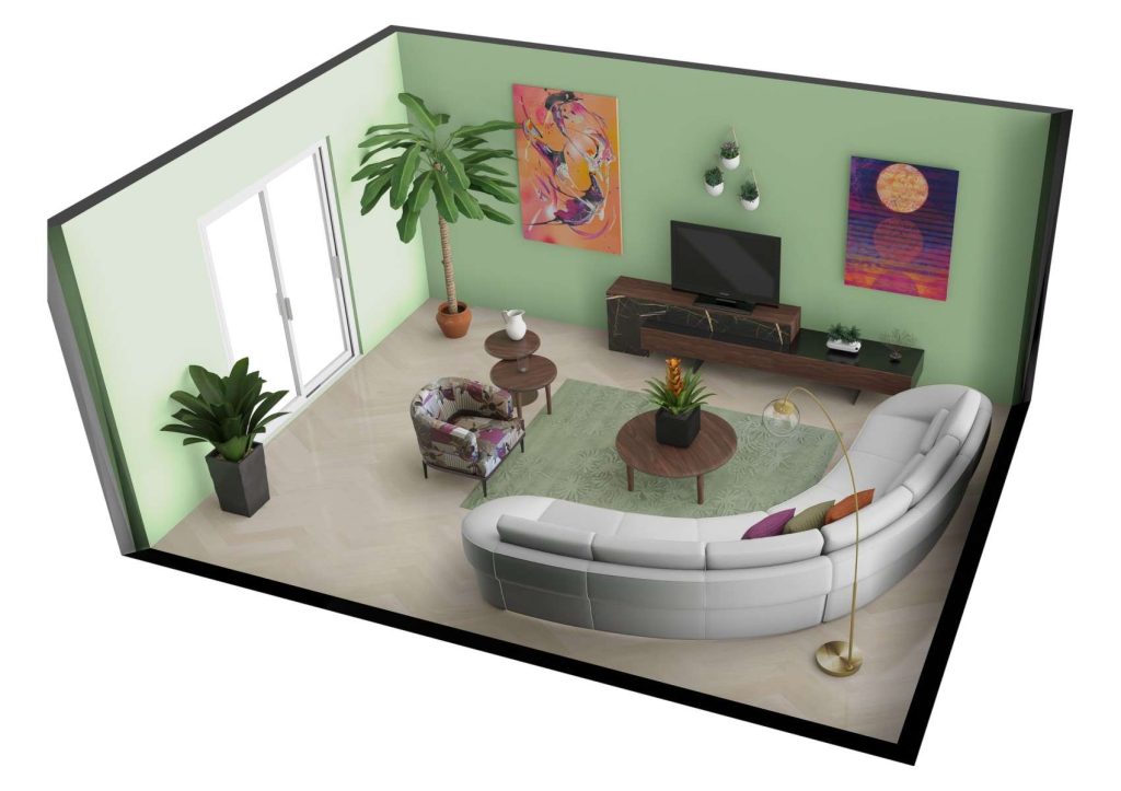 Also consider furnishings that come in curved shapes and are made with materials like wood, glass, rattan, or fabric to build a space that feels airy, organic, and welcoming. Don’t forget art, accessories, and natural objects like shells to play up the island vibes. Last but not least, try arranging decorative tropical plants around your space to make your staycation getaway complete.