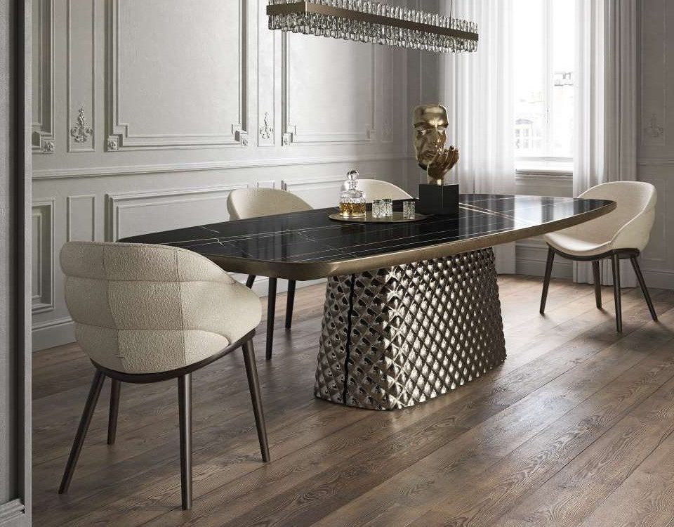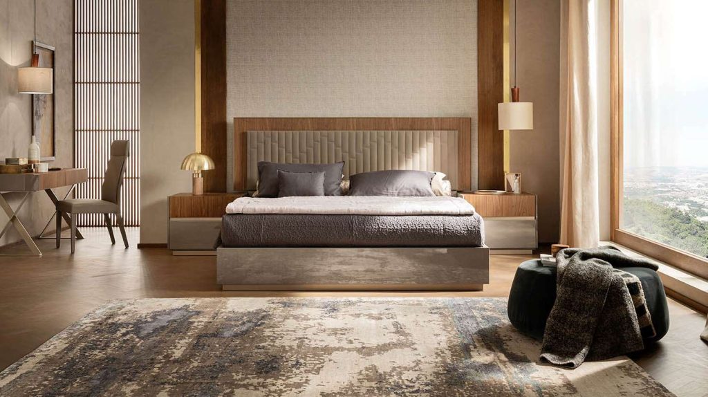 Indeed, thinking of texture or the natural variations in material as forms of patterning can expand your design possibilities and introduce multisensory layers to your space. Consider a piece like the Bella Clara Bed – its headboard combines laser-cut wood and stitched eco-leather that form subtle striped and zigzag patterns. The Ripple Console boasts a carved front that resembles ocean waves, while the inlaid wood grain of the Oliana Table forms a symmetrical design like a snowflake or sunburst.