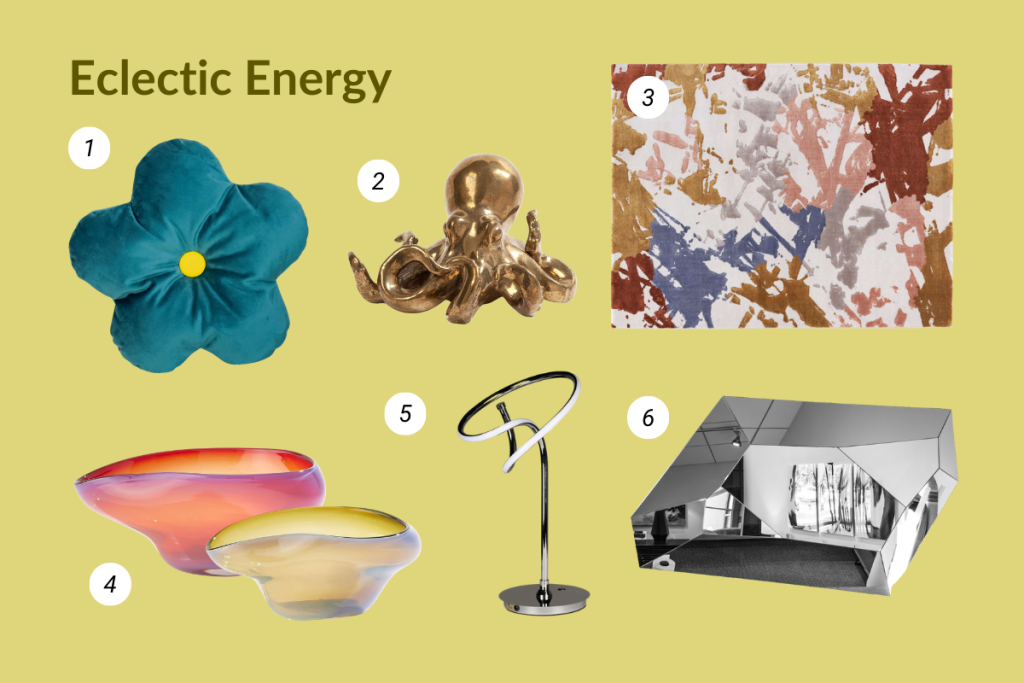 Perhaps you’re a creative who thrives on exciting surroundings or a host who loves to spark conversation – either way, the bold use of color and unique statement pieces of Eclectic Energy has what you need for a dynamic look.