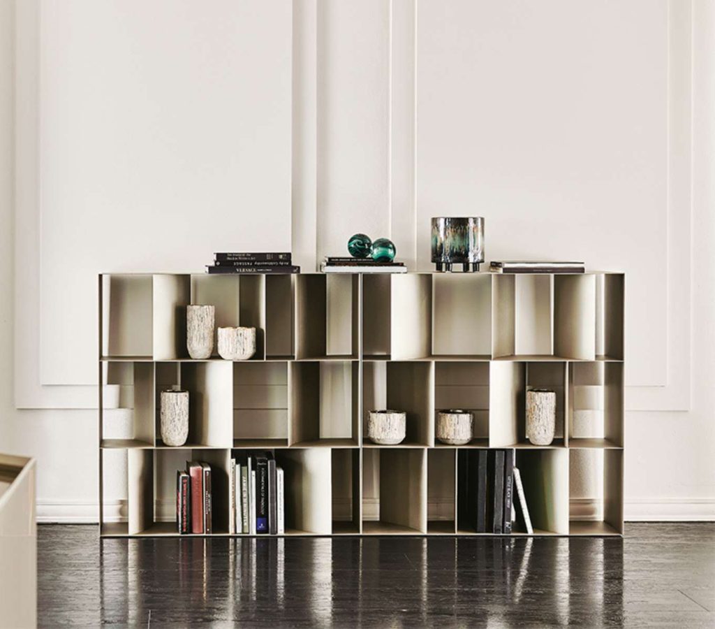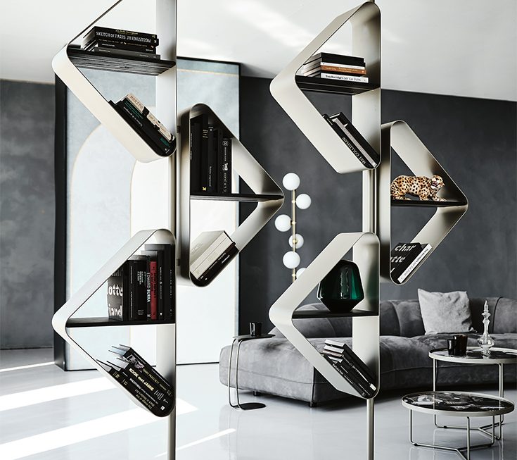By layering designs with different sizes, patterns, and colors, you create the feeling of a showcase, like one you might find in a museum, which is key to capturing that lived-in, timeless feel. Place a table or desk lamp on a shelf and a stylish articulating floor lamp in the corner; add an earthy-toned flowerpot to store keys or display bookmarks; pair a traditional canvas wall art with three-dimensional wall sculptures like Gold Spike. This mix and match of items adds diversity amongst your books, giving the eye fun colors and textures to enjoy.