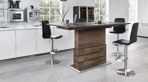 For example, the Karsten High-Rise Dining Table features an electric adjustment mechanism that allows you to raise its height from 25” to 43”, creating one surface for a variety of activities. A true multi-tasker, Karsten also comes with extension leaves that let it accommodate not only a large gathering, but also a sizable amount of paperwork, or an ambitious craft project. Being able to raise or lower the table allows it to function at bar or counter height for dining but also act as a tall buffet in a party situation or even as a sit/stand desk for work or creative activities.