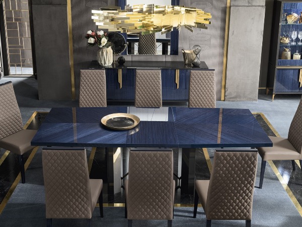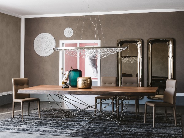 For homes that prefer a more traditional look, dining tables with pedestal, trestle, or simple four-legged bases are a perfect choice due to their sturdiness and lasting charm. With its classic trestle base, the Heidi Dining Table has a no-fuss look that is nonetheless timeless. If you prefer something more contemporary, bases that use artistic, industrial, or sculptural elements will likely capture your interest. These will tend to stand out, whether it’s the distinctive lines of the Gea‘s origami-inspired base, the breathtaking craftmanship of the Atrium in quilted glass, or the crisp, hourglass-like shape of the Clessidra in walnut and ceramic.