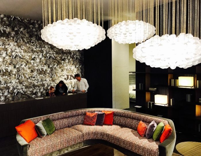 There were so many beautiful and eye catching installations but there were two real stand-outs. The first was from SELETTI. This Italian design company was bursting with vivid color and whimsical designed furnishings and accessories. Very young, very hip with a decided appeal towards Millennials. www.seletti.it . A more glamorous and elegant presentation came from Emanuel Ungaro for the Belgium firm of JNL. www.ungarohome.com