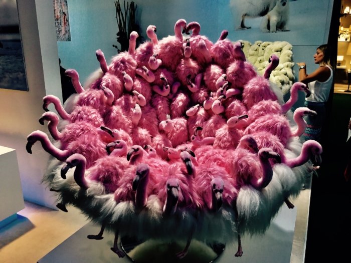 Lush velvets and sumptuous faux furs were everywhere on upholstered furniture. One of the best examples of this that seemed to capture the most attention and photographed was the flamingo and polar bear chairs by the AP Collection of Brussels. Hilarious! Check them out on www.apcollection.be