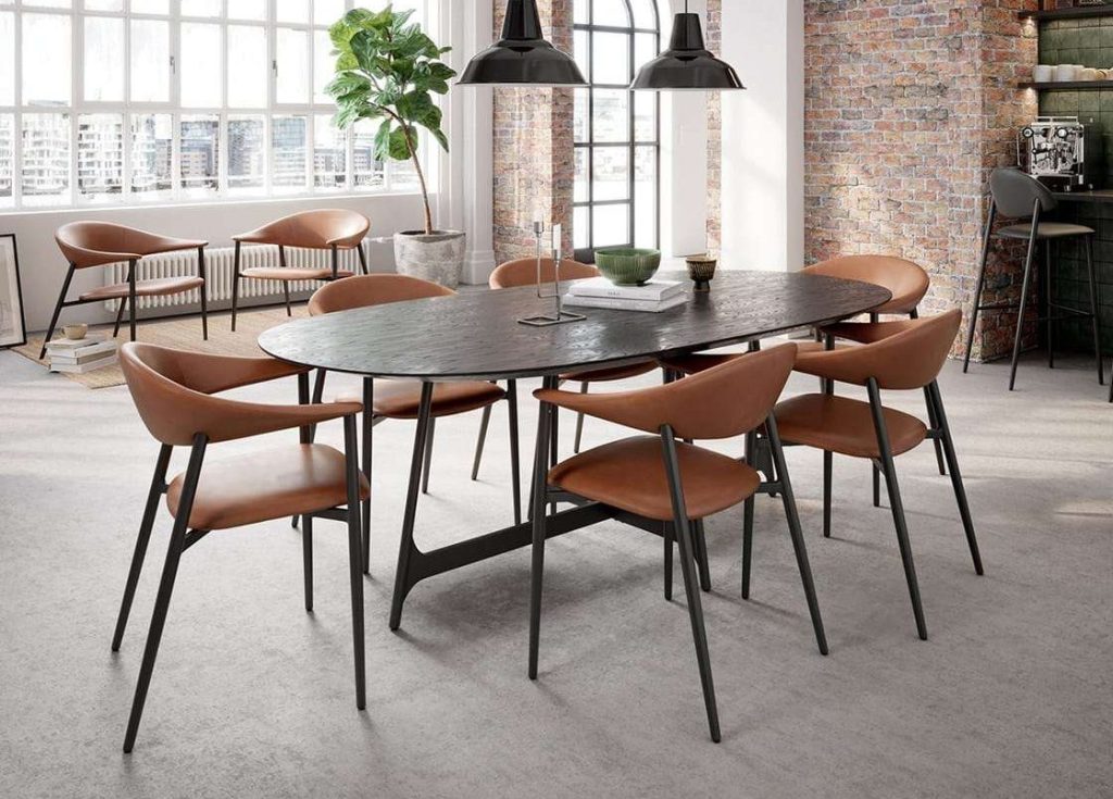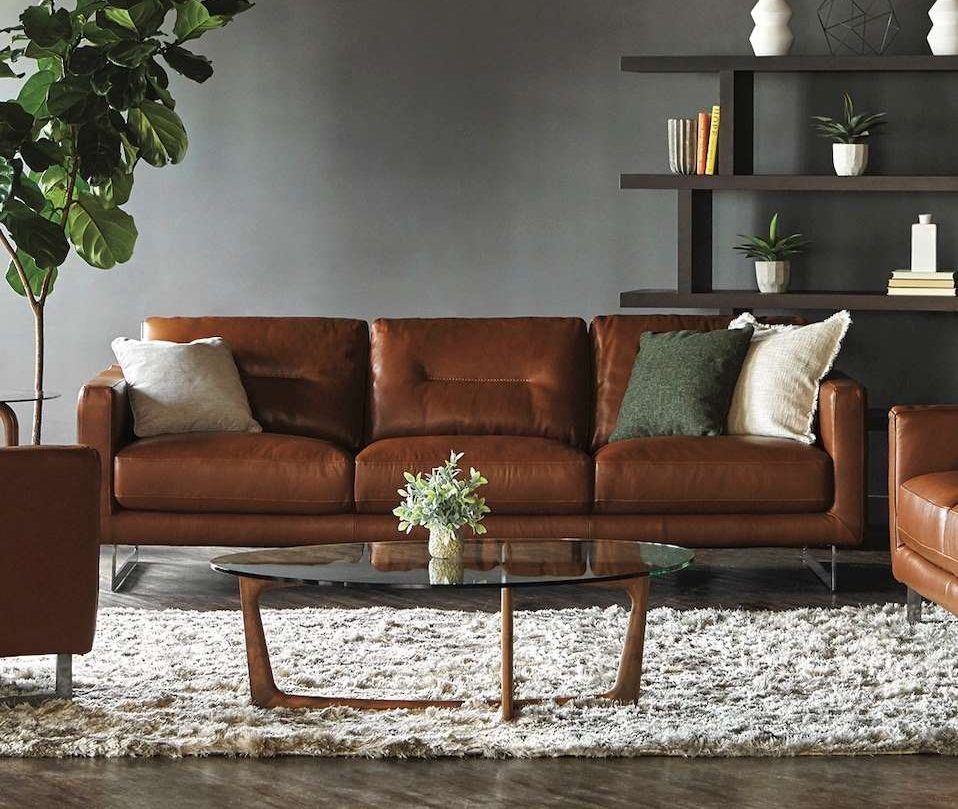 “Complement your living room seating with tables or case goods made of wood or featuring wood accents, and you’re on your way to achieving a stunning look,” he adds. The Hudson TV Stand is one example of a classic design with a black oak veneer that can fit easily into a modern equestrian space. For a bolder effect, you may enjoy the Atari Coffee Table, with its walnut star-shaped legs, or the Copenhagen Dining Table, with its live-edge acacia top.
