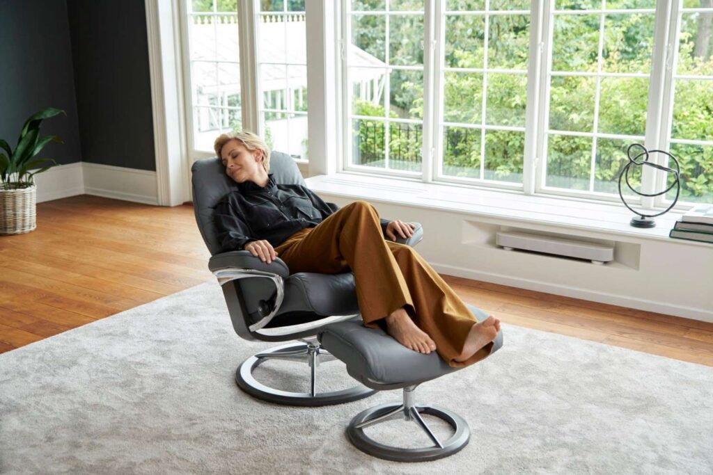 With an Ekornes Stressless® recliner, you can relax in a body-conscious manner too. One of the few recliners with an endorsement from the American Chiropractic Association, these recliners offer support for your lumbar spine, head, and legs in any position. Another favorite of Joffroy’s, Stressless chairs are “of exceptional comfort and quality,” he says. “I could never pass up on a Stressless.”