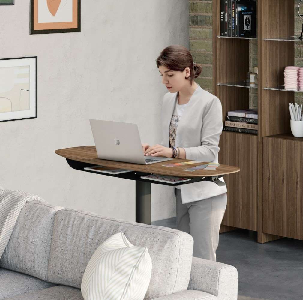 With the adage “sitting is the new smoking” gaining ground, people are seeking ways to reduce their time spent sitting at work. A popular solution is replacing a traditional desk with a sit-stand desk. BDI’s Soma collection of lift furniture includes cutting-edge sit-stand desks like the 72” version with a programmable control lever, hanging hook, and surge protector, or an adjustable-height console table/desk that makes it easy to work healthy from home.