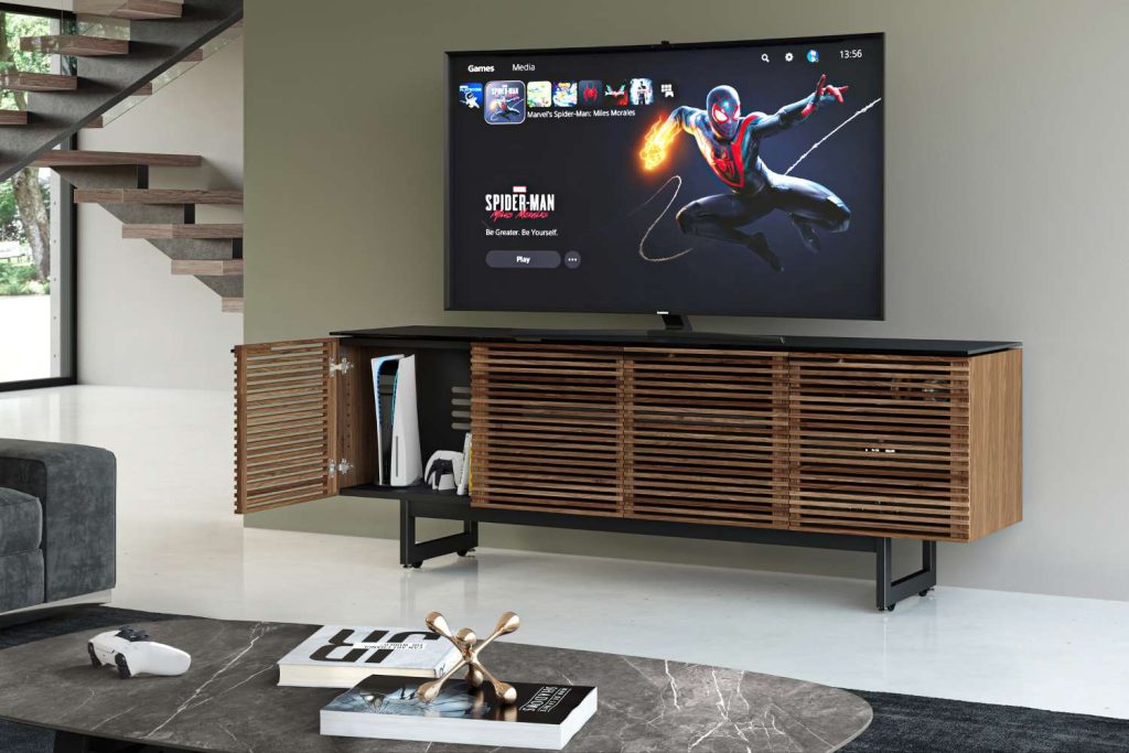Unlike PC gaming, console gaming setups don’t usually have an entire dedicated room, as they require less space and separation. Instead, they’re often integrated into existing multi-functional spaces – like living rooms or bedrooms. The key here is to create a gaming setup that flows with the existing style and function of the room, maintaining its design integrity. “The biggest thing for console gamers to focus on is designing a space that mitigates clutter and mess, so every person using the room feels comfortable,” Mason states.