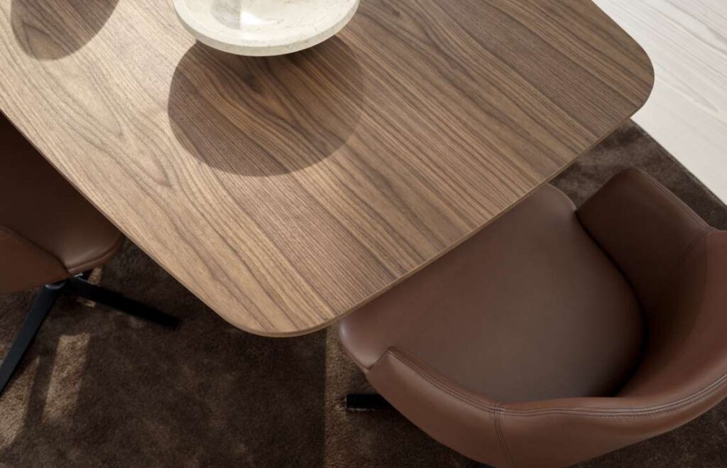 For non-upholstered furniture, we suggest choosing pieces with protective layers, such as the Jones Dining Table which features a Fenix tabletop, and powder-coated metal legs and bases, like those on the Crescent dining chair. Both materials are made to withstand everyday wear and tear and have a simple cleaning regimen, while also having a sleek, smooth look that adds sophistication to any space.
