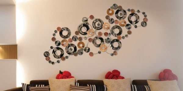 Not all sculptures must be placed on a horizontal surface – wall-mounted sculptures can open a world of possibility when it comes to accessorizing. “A room can have both free-standing and wall sculptures,” Young says. “Wall sculptures, with their dynamic and dimensional design, are great for adding depth and movement to a room.” She recommends the Artisan House wall sculptures for their playful abstract shapes and masterful use of metal. For instance, Propensity features warm metallic tones and a pleasing configuration of linked circles, while Traffic Control is a whimsical arrangement of paper airplanes made of steel.