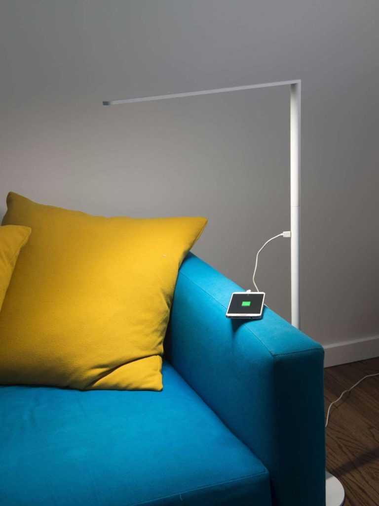 In the afternoon and evening, warmer toned lamps, ranging from yellow to orange, help you wind down as the sun sets, increasing relaxation while also boosting creativity. With its warmer color temperature, the Circa floor lamp is a better choice later in the day; its shade also rotates 360 degrees, allowing it to function as a task lamp and provide ambient lighting.