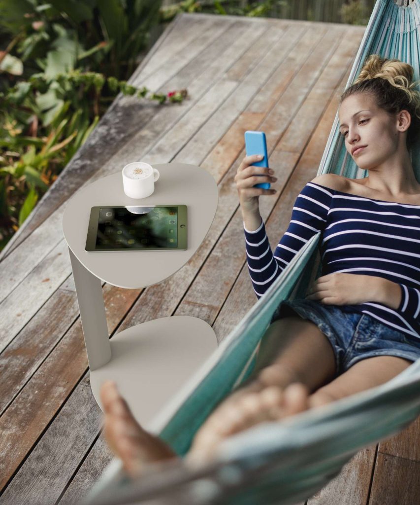 Additional seating and table room are sometimes needed in any living space, especially if you enjoy entertaining or hosting guests. If you already have an ottoman or chaise lounge, pulling up a table with a versatile design like Jamison instantly creates a spot for another person to dine, read, or type. Similarly, having a laptop table like Bink on hand can accommodate any guests that need to work during their stay. Its mobile steel structure can easily fit in a guest room or be used outdoors when needed.