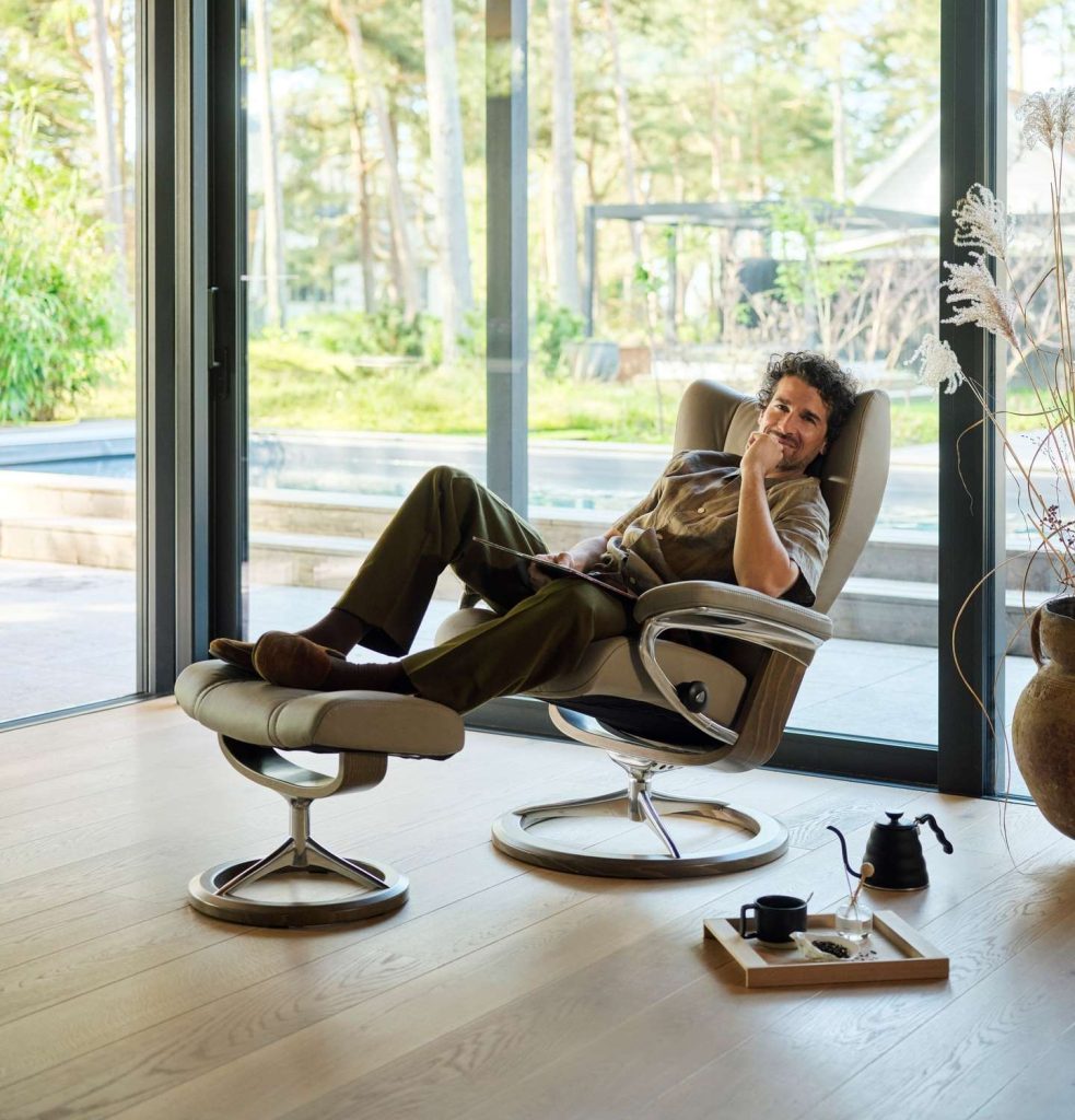 Trained as an architect, Jacobsen designed furnishings that often had curving lines and organic shapes that echoed the human form. He created one of the most recognizable pieces of the Danish Modern movement, the Egg Chair, featuring a winged headrest and round, egg-like silhouette. Other notable works include the Swan and Ant Chairs, also inspired by nature. Jacobsen’s forms have contemporary parallels in pieces like the Stressless® Wing Recliner and the Paragon Dining Chair.