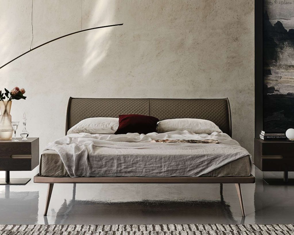For a more understated touch of luxury, consider something like the Ayrton, which has a fully upholstered leather headboard grounded by a slim bronze frame. If you prefer a cozier look, a fabric frame with variegated tones or textured feel would be a great choice; the Paxon bed fits the bill with a tailored structure that nonetheless feels casual. Or take a classic wood frame to the next level with the Cross-Linq bed by BDI, which has the perfect balance of cutting-edge and laid-back design, with a bold slatted headboard and timeless rounded frame.