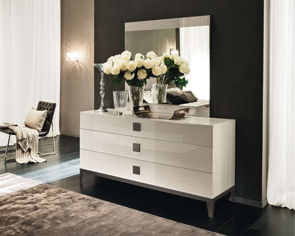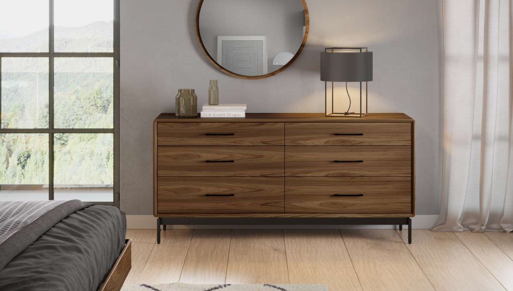 To maximize tabletop space, a low-level dresser like Linq offers a wider surface to display your personal items, and wire management straps to house an entertainment setup, mitigating the need for a separate TV stand. If floor space is your main concern, then a taller chest like the Bella Borgata would be a better fit, with a smaller profile that still offers ample storage space. Having a variety of designated storage spaces in your bedroom will help keep it organized, creating a room with plenty of breathing space and stylish possibilities.