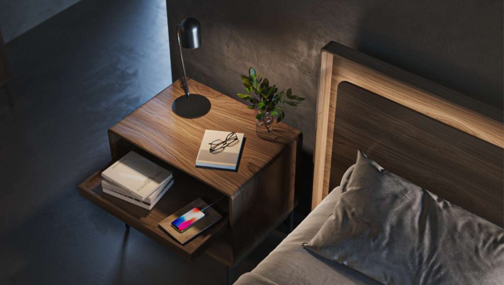 With an open compartment, pull-out tray, and soft-close drawer, the Linq side table can be used as a traditional nightstand and as a tech hub, with an integrated power strip and cable management wires to help you store and charge your tech essentials. Storage ottomans are another great multifunctional item to help you declutter; the Jazz ottoman has a hidden compartment perfect for storing extra blankets, board games, or other items out of view and can also be used for sitting or resting your feet.
