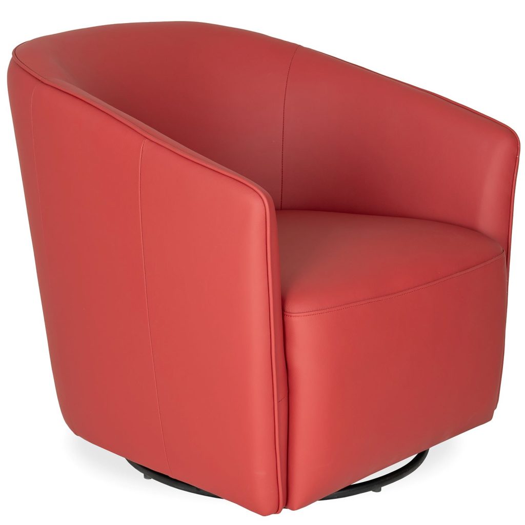 Ease into comfort with the Bryson Swivel Chair. Shown in ocean blue leather with a sculpted seat back, diamond accent stitching, and matching lumbar pillow, Bryson provides both support and...
