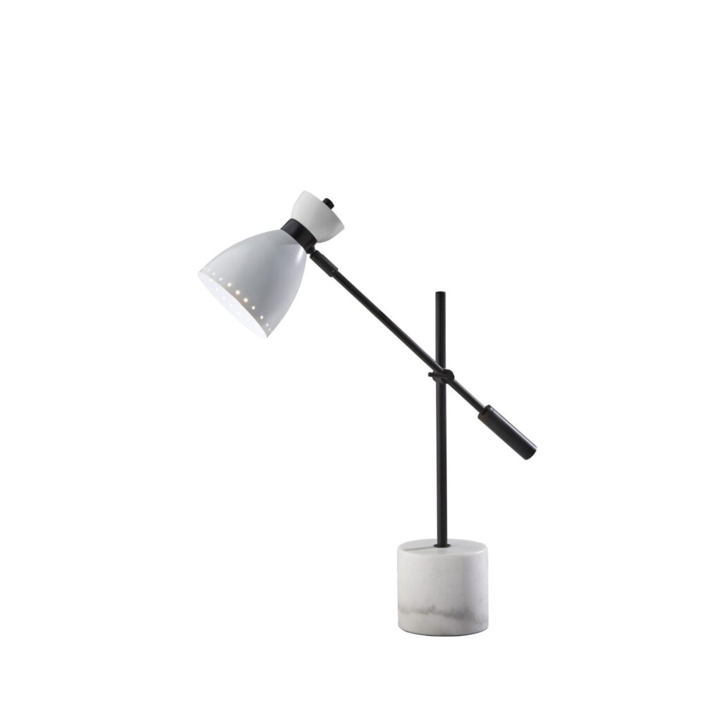 The Viola Desk Lamp features a white adjustable shade, a sleek black stem, and a white marble base for a look that is contemporary and sophisticated. The 360-degree swivel shade...