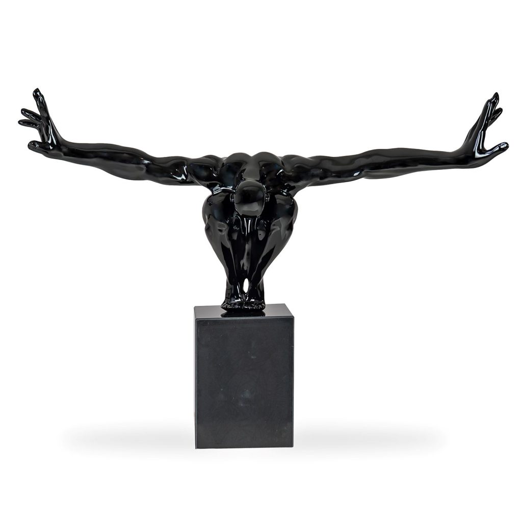 The Powerhouse Sculpture features two figures hanging in an acrobatic pose from a brass rectangular frame. Both made of resin with a hand-painted silver finish, one figure hangs by their...