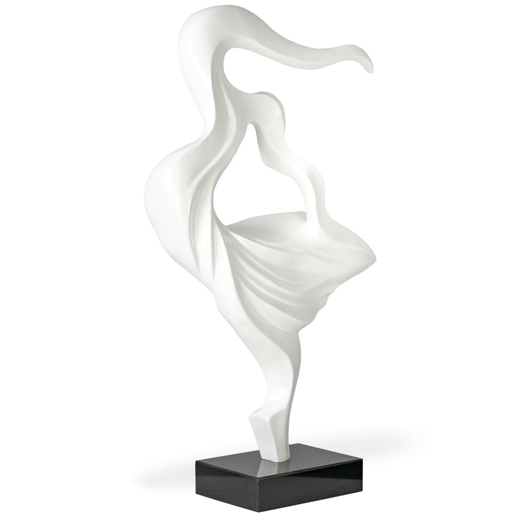 The Stamina Sculpture features two figures balanced in dynamic poses on a brass rectangular frame. Both made of resin with a hand-painted silver finish, one figure kneels on top of...