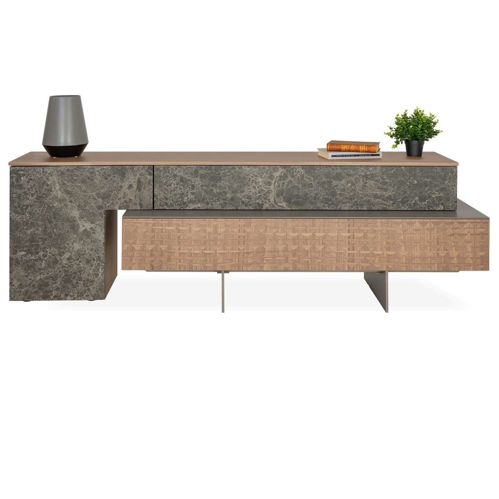The Karma Console features a contemporary asymmetrical design with two spacious cabinets and an off-center drawer unit that appears to float above. Available in a walnut finish, this console has...