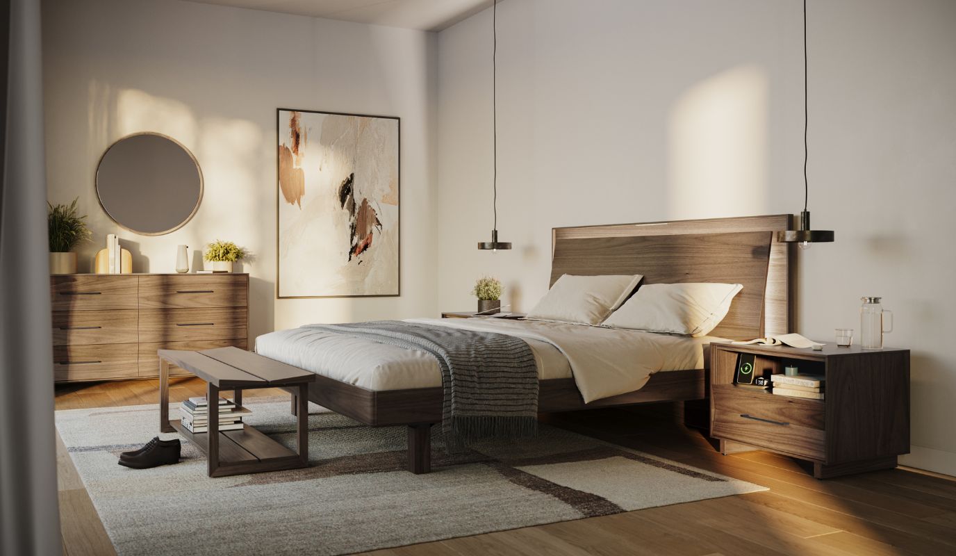 When it comes to innovative, intuitively designed furniture that improves the way you live, work, and sleep, look no further than BDI. Our BDI bedroom collection includes the Linq and Kava product lines that combine sleek, modern design with smart features that reimagine what bedroom furniture can do for you. Try a Linq bed, with integrated charging stations, a fully adjustable frame and platform, and noise-reducing slats – or enjoy all the same features with a more geometric aesthetic when you choose the Kava bed. Round out your setup with the equally ingenious BDI side tables and dressers, boasting features like sliding tabletops, wire management wraps, and safety mechanisms to prevent tip-over. Add a BDI mirror, framed in matching walnut, as the perfect finishing touch.