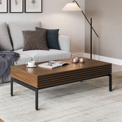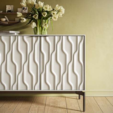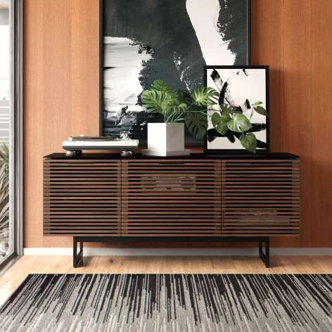 Bring modern design and functionality to your dining, living, or entryway space with the Mesa Storage Console. Mesa combines fluid shapes with stark rectilinear lines, while sporting features like adjustable shelves, soft close doors, floor levelers, and adjustable utility drawers.