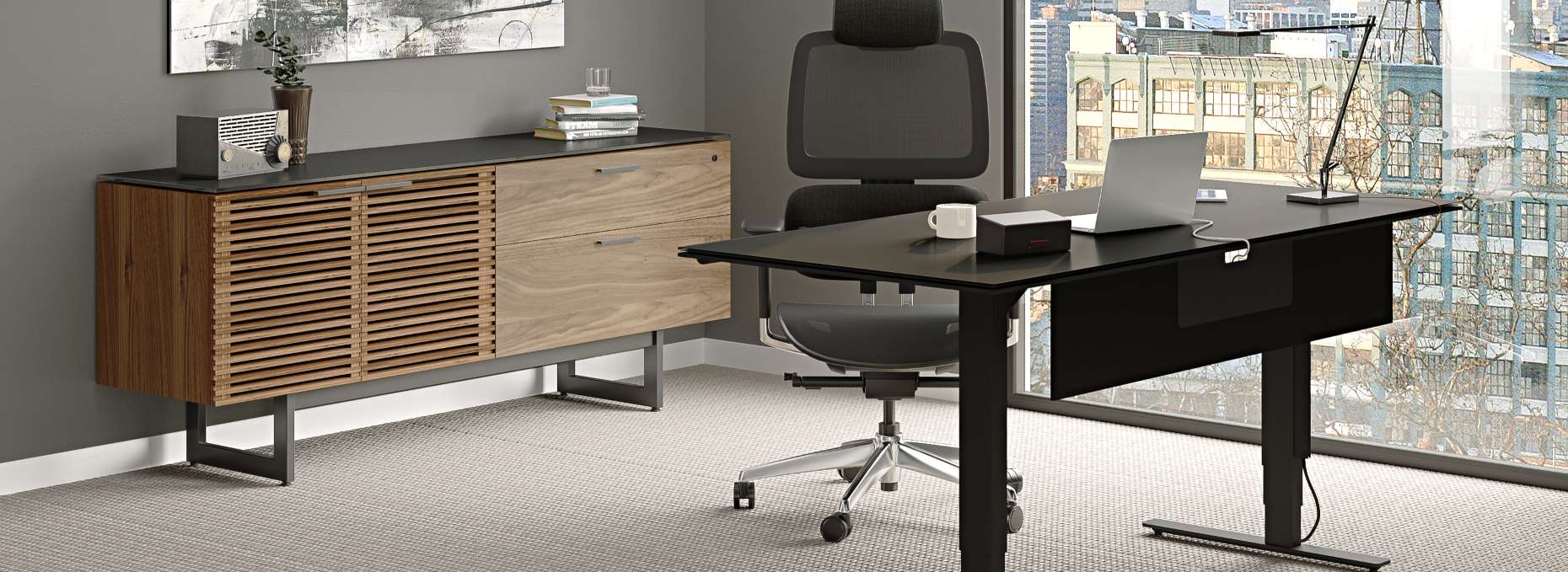 Credenzas & Multifunction Cabinets: Elevate your storage capabilities with a contemporary credenza or multifunction cabinet. These multifaceted storage solutions often include cabinets, adjustable shelves, file storage, and dedicated pull-out printer trays, providing a sleek and organized look for your modern office space.